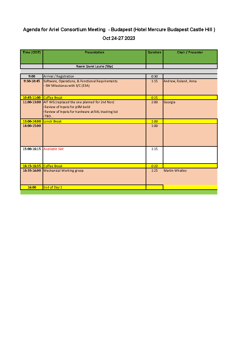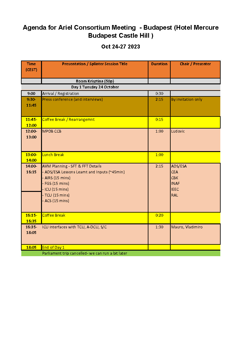 - Oct 24, Tuesday - technical sessions, free night
