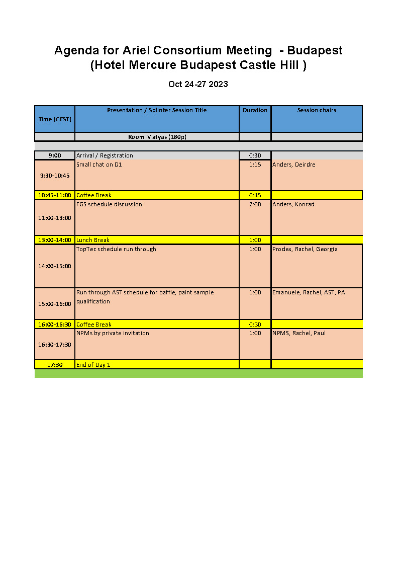 - Oct 27, Friday - scientific sessions, most people leave