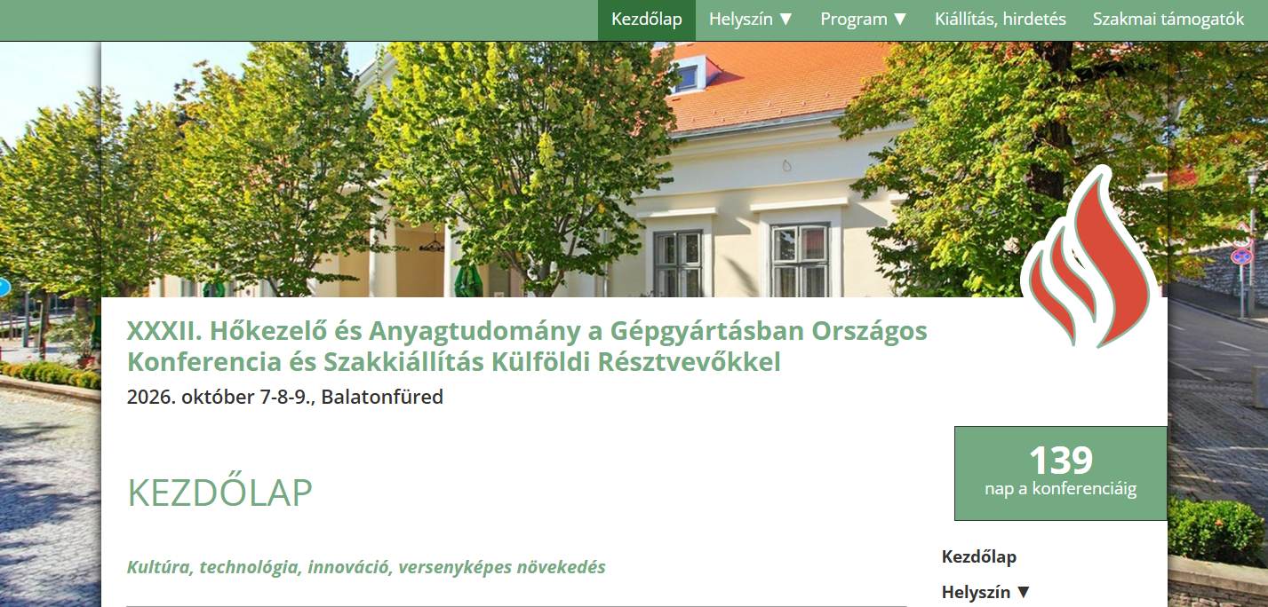 XXXII. Hőkezelő és Anyagtudomány a Gépgyártásban Országos Konferencia és Szakkiállítás Külföldi RésztvevőkkelXXXII. Hőkezelő és Anyagtudomány a Gépgyártásban Országos Konferencia és Szakkiállítás Külföldi Résztvevőkkel