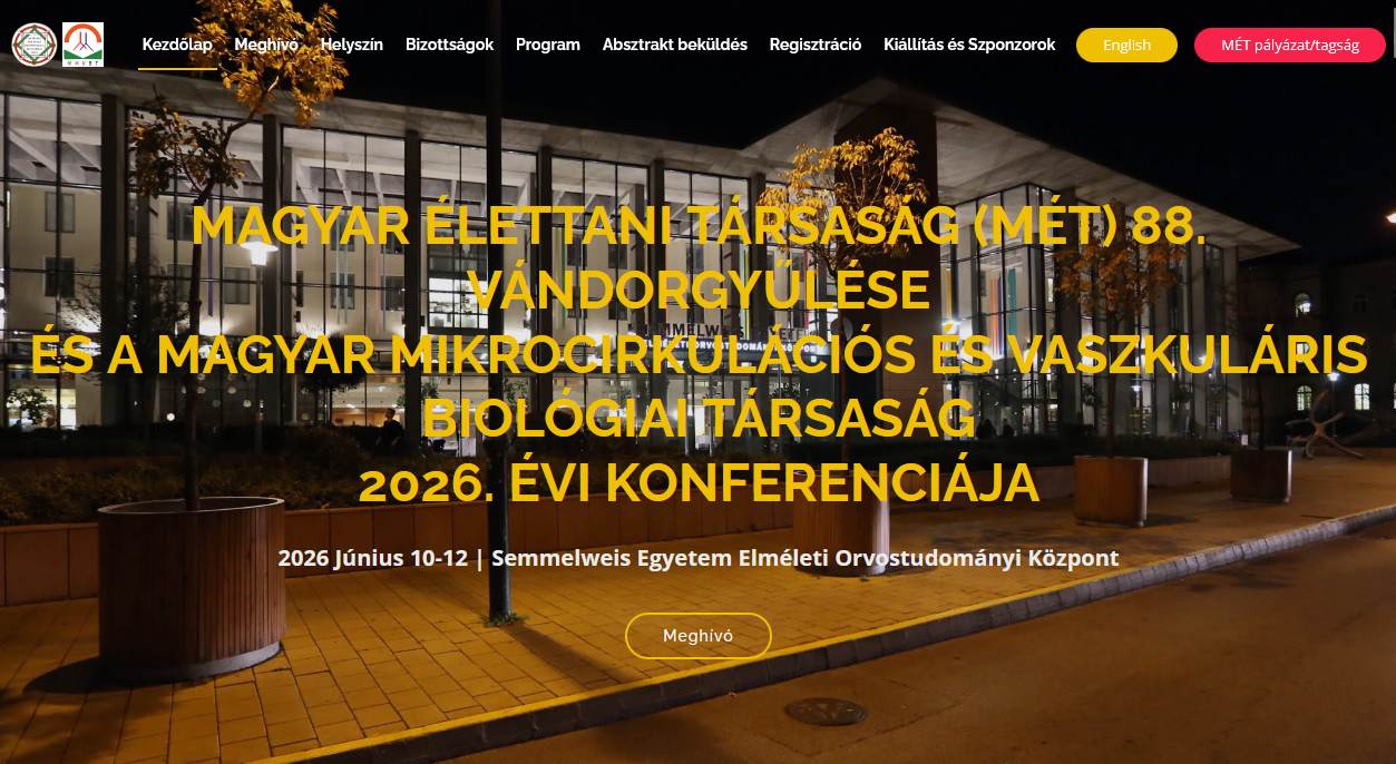 88th Hungarian Society of Physiology (MÉT) and Hungarian Microcirculation and Vascular Biology Society (MMVBT) 2026. Joint ConferenceMagyar Élettani társaság (MÉT) 88. Vándorgyűlése
